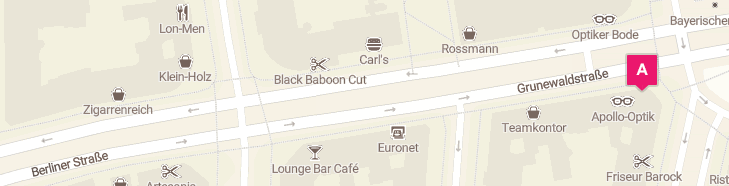 Besuchen Sie den Apollo Optiker in Berlin (10825) für individuelle Beratung und eine umfangreiche Auswahl an Produkten. Mit hochmodernen Messverfahren und Geräten sorgen wir für eine präzise Bestimmung Ihres Sehvermögens. Dank unserer bequemen Online-Terminbuchung profitieren Sie zudem von kurzen Wartezeiten beim Optiker in Berlin. Neben unseren Apollo Service-Garantien, die unter anderem kleinere Brillenreparaturen einschließen, bieten wir Ihnen auch eine breite Auswahl an Brillen, Sonnenbrillen und Kontaktlinsen. Bei Apollo in Berlin finden Sie alles von trendigen Kinderbrillen über Gleitsichtbrillen bis hin zu Ray-Ban Sonnenbrillen. Vervollständigen Sie Ihren Stil mit dem passenden Zubehör, darunter Etuis und Brillenbänder. Apollo-Optik - Berlin - Grunewaldstr. hält zudem eine große Auswahl an Kontaktlinsen und Kontaktlinsenflüssigkeiten bereit, ergänzt durch fachkundige Beratung direkt vor Ort.